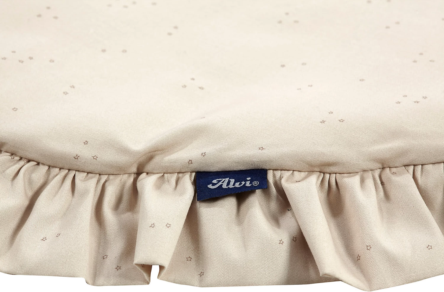 Die Krabbeldecke von Alvi ist in einem runden Design gehalten. Ihr Rand ist mit Volants verziert. Die Baumwoll-Qualität bietet kleinen Entdeckern einen hohen Komfort. Krabbeldecke von Alvi Volant-Rand Ø 100 cm robust und pflegeleicht weich gepolstert Bezug aus Baumwolle mit Bio-Baumwolle, Füllung bauschige Hohlfaser Eine runde Sache: Die Krabbeldecke von Alvi punktet mit ihrem kreisförmigen Design. Der Rand mit Volant-Besatz verleiht dem Produkt eine verspielte Note. Auf der soft gepolsterten Decke kann Dein Mini liegen, sich drehen und das Herumkrabbeln lernen. Der Bezug ist aus Baumwolle mit Bio-Baumwolle gefertigt. So fühlt sich die Unterlage sehr angenehm an.