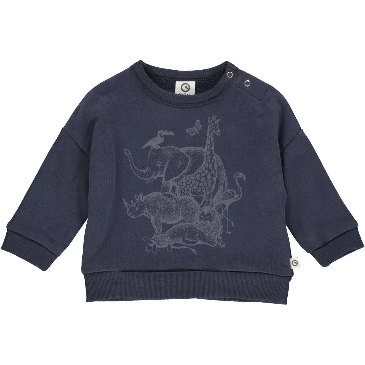 Das Sweatshirt ist aus Bio-Baumwolle hergestellt. Es verfügt über einen zarten Tier Print auf der Frontseite. Die Druckknöpfe im Nackenbereich erleichtern das An- und Ausziehen. Der Pullover hat einen lockeren Schnitt und ist sehr bequem. Das Produkt ist durch Ecocert Greenlife Lic. No. 152033 GOTS Organic zertifiziert. Dies ist aktuell der höchste Standard für Bekleidung. Alle Produktionsprozesse wie Färben, Weben und Nähen werden unter strengsten Vorgaben mit Rücksicht auf die Umwelt durchgeführt. Auch die Arbeitsbedingungen werden während der einzelnen Produktionsschritte streng überwacht. Baumwolle 100%