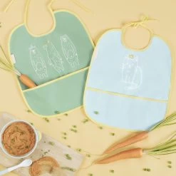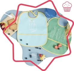 Das Lätzchen von badabulle kommt im vorteilhaften Set und ist ein hervorragender Begleiter für den Alltag. Damit nicht zu viel Essen auf dem Boden landet, ist das Modell mit einer Auffangschale versehen.