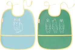 Das Lätzchen von badabulle kommt im vorteilhaften Set und ist ein hervorragender Begleiter für den Alltag. Damit nicht zu viel Essen auf dem Boden landet, ist das Modell mit einer Auffangschale versehen.
