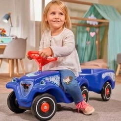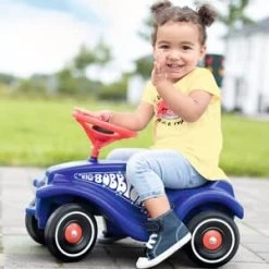 Leuchtendes Tiefseeblau, freundliche Fische, freche Krebse und leuchtende Seesterne laden Kinder ab 12 Monaten mit dem BIG-Bobby-Car-Classic Ocean zu Ausflügen in versteckte Unterwasserwelten ein. BIG-Bobby-Car-Classic Ocean ab 12 Monaten Tragkraft 50 kg ergonomischer Sitz mit tiefliegendem Schwerpunkt Aufklebersatz Ozean Das moderne, harmonische Farbdesign aus dunklem Blau mit leuchtendem Rot in Kombination mit phantasievollen Stickern vergrößert den Spaß an Bewegung und regt zu lustigen Fahrten an. Es trifft dabei den Geschmack von Kindern und Eltern gleichermaßen. Doch nicht nur im Hinblick auf das Design überzeugt das Fahrzeug aus der Bobby-Car-Linie. Das BIG-Bobby-Car-Classic ist legendär in seiner Form und unschlagbar in Sachen Qualität. Die seit Jahrzehnten bewährte, unveränderte Karosserie des beliebten Kinderautos ist ergonomisch perfekt auf die Bedürfnisse der kleinen Fahrer und Fahrerinnen abgestimmt. Ein griffiges Sicherheitslenkrad mit mechanischer Hupe, vier robuste und abriebfeste Kunststoffräder, je eine Anhängerkupplung vorne und hinten sowie eine Kniemulde zum Fahren für größere Kinder ergänzen die spielstarke Ausstattung. Für einen kleinen Wendekreis sorgt die stufenlose Achsschenkellenkung des BIG-Bobby-Car. Die hervorragende Verarbeitungsqualität und der tiefliegende Schwerpunkt machen das BIG-Bobby-Car zum besonders sicheren Spielzeug. Das BIG-Bobby-Car-Classic Ocean ist aus hochwertigen Materialien im modernen BIG-Werk in Deutschland hergestellt.