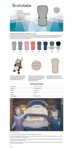 Die Sommereinlage der Firma Altabebe ist ideal für Ihren Buggy oder Sportwagen. Durch das 3D Abstandsgewebe wird die Wärme im Sommer besser abgeleitet. Ihr Kind schwitzt nich so stark. Die Buggyeinlagen Altabebe sind in verschiedenen Farben. Die Einlage hat 8 Gurtschlitze. Sie besteht aus 100% Polyester – Oberseite und 3D Abstandsgewebe – Rückseite; waschbar bei 30°C. Material: 100% Polyester, Rückseite: Mesh (Polyester)