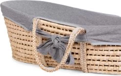 Im Moseskorb SOFT CORNHUSK von CHILDHOME haben es Babys in der Anfangszeit gemütlich. Das Körbchen kann leer überall in der Wohnung mit hingenommen werden und das Baby in der Nähe der Eltern sein. Das Körbchen ist ein schöner Ort für Babys, die noch nicht selbstständig sitzen können und muss stets auf einer stabilen Oberfläche stehen.