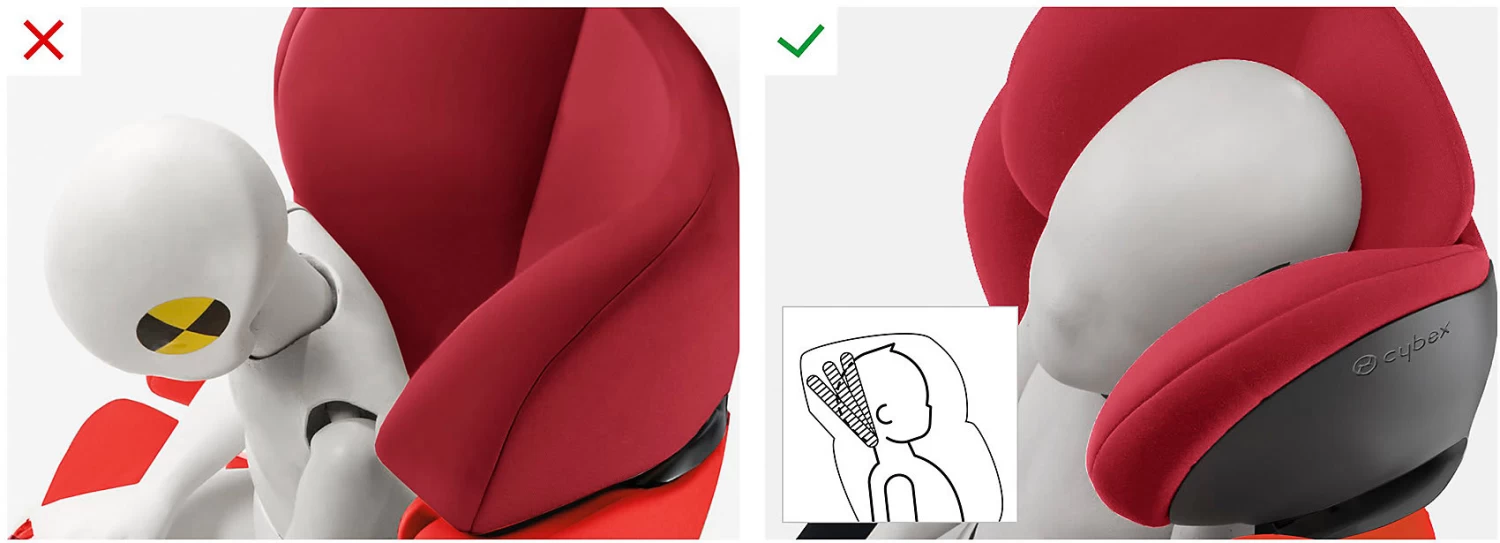 Durch seine , 3-fach neigungsverstellbare Kopfstütze bleibt das Kind auch während des Schlafens aufrecht in der schützenden Sicherheitszone des Sitzes und kippt nicht in eine gefährliche Position. Im Falle eines Unfalls wird die Aufprallenergie, durch das individuell einstellbare L.P.S System, frühzeitig absorbiert. Die L.S.P. Protektoren werden entsprechend der Größe des Autos individuell eingestellt.