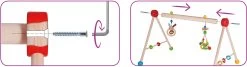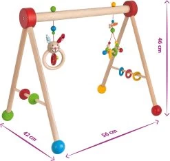 Mit dem farbenfrohen Baby Gym von Eichhorn Baby und seinen Spielaktivitäten und Geräuschen wird gezieltes Greifen, Geschick, Reaktion und Konzentration trainiert. Spieltrapez Hase von Eichhorn ab 3 Monaten aus Buchenholz und Plüsch Made in Germany Am Baby Gym sind zwei Spielzeuge zum Greifen aufgehängt, jedes mit einer anderen spannenden Funktion: ein kleines Glöckchen, verschiedene Materialien und das kleine süße Hasenköpfchen mit Plüschohren. An den Seiten sind Elemente zum Drehen und Beißringe aus Gummi für kleine Babys zum Spielen befestigt. Für die Herstellung des Eichhorn Baby Gyms wird ausschließlich FSC® 100% Holz aus nachhaltiger Forstwirtschaft verwendet.