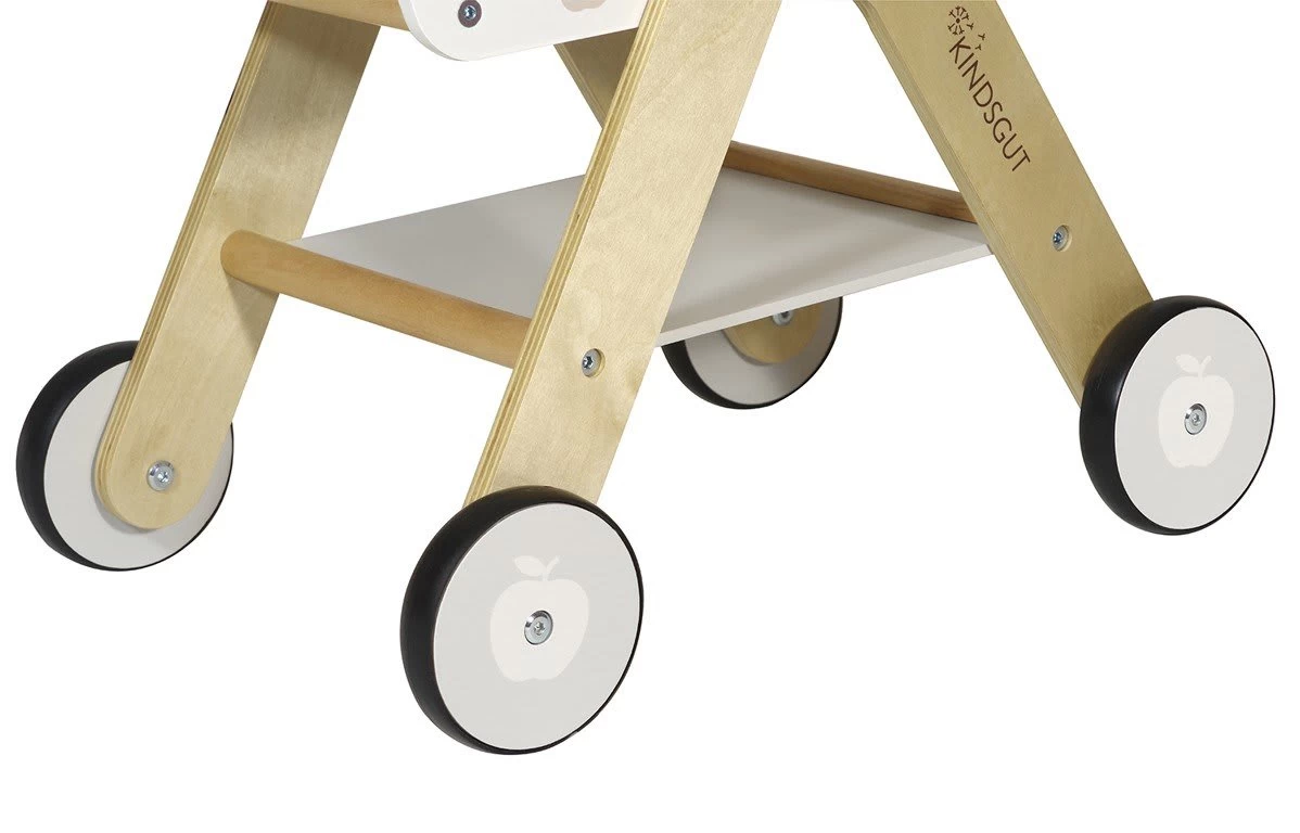 Der Einkaufswagen Obst von Kindsgut ist die perfekte Unterstützung zur Förderung der kognitiven Feinmotorik Deines Kindes und dient vor allem dazu, das Laufen zu verbessern. Mit dem eleganten Design können Sie das Spielzeug stilsicher in Ihr Wohnkonzept integrieren. Der aus Holz gefertigte Kindsgut Einkaufswagen passt ideal zum bewährt reduzierten Look moderner Einrichtungsstile. Durch das Spielen mit dem Einkaufswagen wird Dein Kind dabei unterstützt, das Laufen weiter zu verbessern bzw. immer sicherer dabei zu werden. Die dezente Farbe und die kindliche Form gepaart mit den schönen Obstmotiven machen das Spielzeug zur optimalen Ergänzung und zu einem eindrucksvollen Hingucker in Deinem Zuhause.