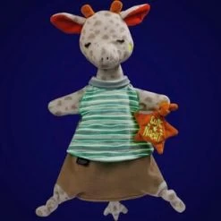 Die kleine Giraffe von Fehn ist Spielkamerad, Einschlafhilfe, Handpuppe und Schmusetuch in einem. Schmusetuch-Handpuppe Giraffe von Fehn aus der „Gute Nacht“-Kollektion mit Glow-in-the-dark-Bestickung Obermaterial aus Velours und Jersey ab Geburt geeignet Die Giraffe wird schnell zu Babys treuem Begleiter: Dank weichem Obermaterial aus Velours und Jersey ist sie der perfekte Kuschelfreund für die Kleinen ab Geburt. Die unterschiedlichen Elemente laden die Kleinen zusätzlich zum Greifen und Entdecken ein, die im Dunkeln leuchtende Bestickung nimmt die Angst vor der Dunkelheit. Für noch mehr Spielspaß kann die Giraffe als Handpuppe verwendet werden und wird so zur süßen Geschichtenerzählerin.