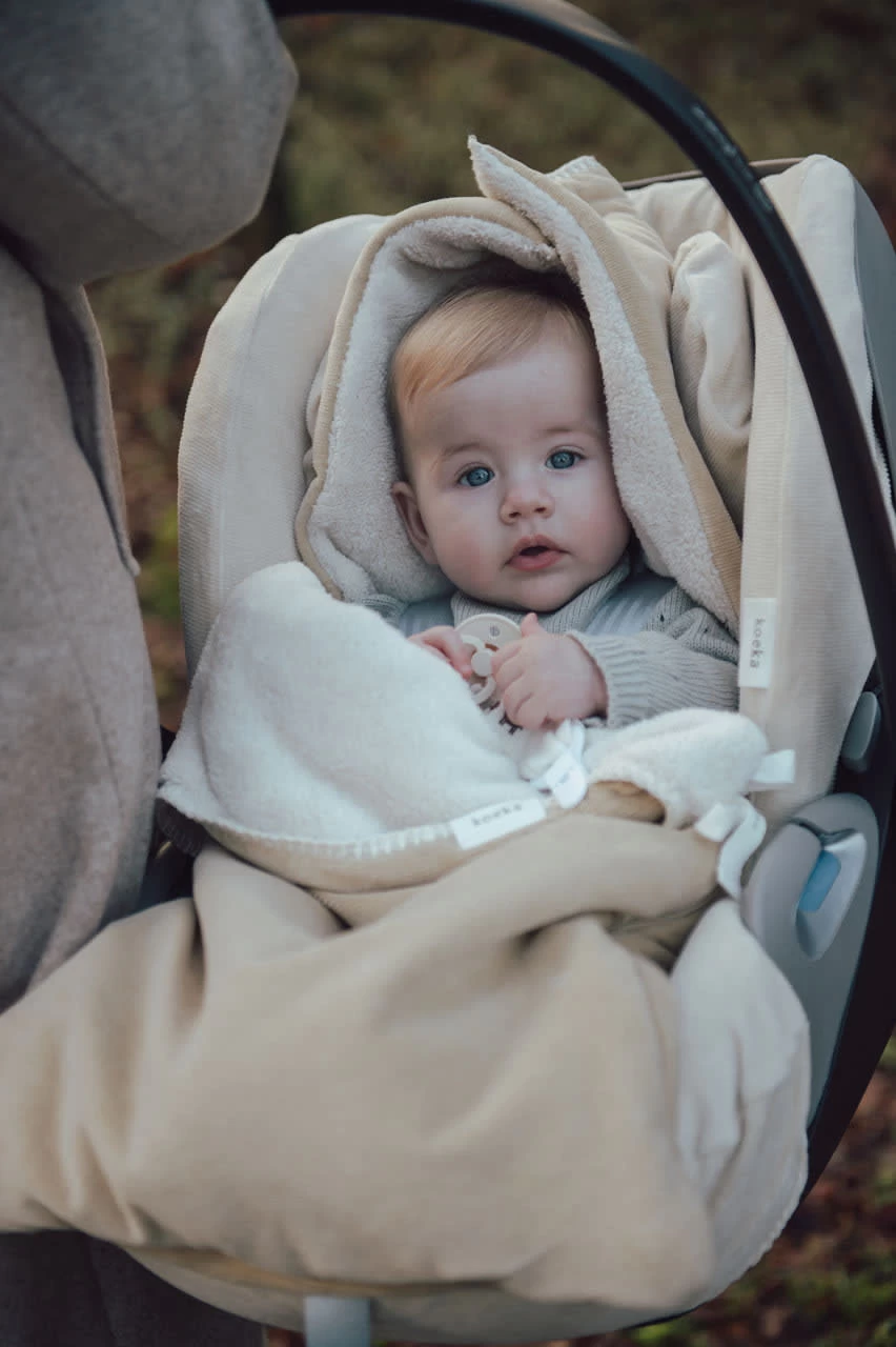 – Warmer Teddy Fußsack mit Kapuze für den Autositz 0+