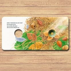 Nanu, Löcher im Buch? Ja, und zwar ganz besondere! Die Lochstanzungen lenken den Blick und die Fingerchen der Kinder zu den verschiedenen Tierwohnungen in der Villa Baum: in das Nest einer Schwanzmeise, zur Kinderstube des Baummarders, in einen Ameisenbau oder zu einer Waldmaus, die es sich unter den Wurzeln gemütlich gemacht hat. Mit jedem Umblättern wird der Einblick in die Lebensräume der Tiere intensiver.