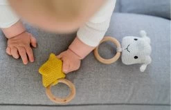 Der Kindsgut Häkel-Greifling aus 100% OEKO-TEX zertifizierter Baumwolle (STANDARD 100 by OEKO-TEX®) und einem naturbelassenen Holzring ist genau das richtige für unsere Kleinsten. Mit dem Greifling können die motorischen Fähigkeiten gefördert werden. Sie können erstes Greifen lernen und durch die vorhandene Rassel auch den Geräuschen lauschen die dabei entstehen. Durch das weiche uns unbehandelte Holz können Babys außerdem beim Zahnen unterstützt werden. Der Greifling kommt hübsch verpackt im Kindsgut Design und eignet sich somit besonders gut als Geschenk.
