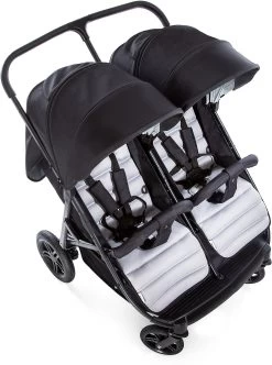 Geburt genutzt werden. Ein Doppelkinderwagen, der mit All-Terrain-Rädern und edlen