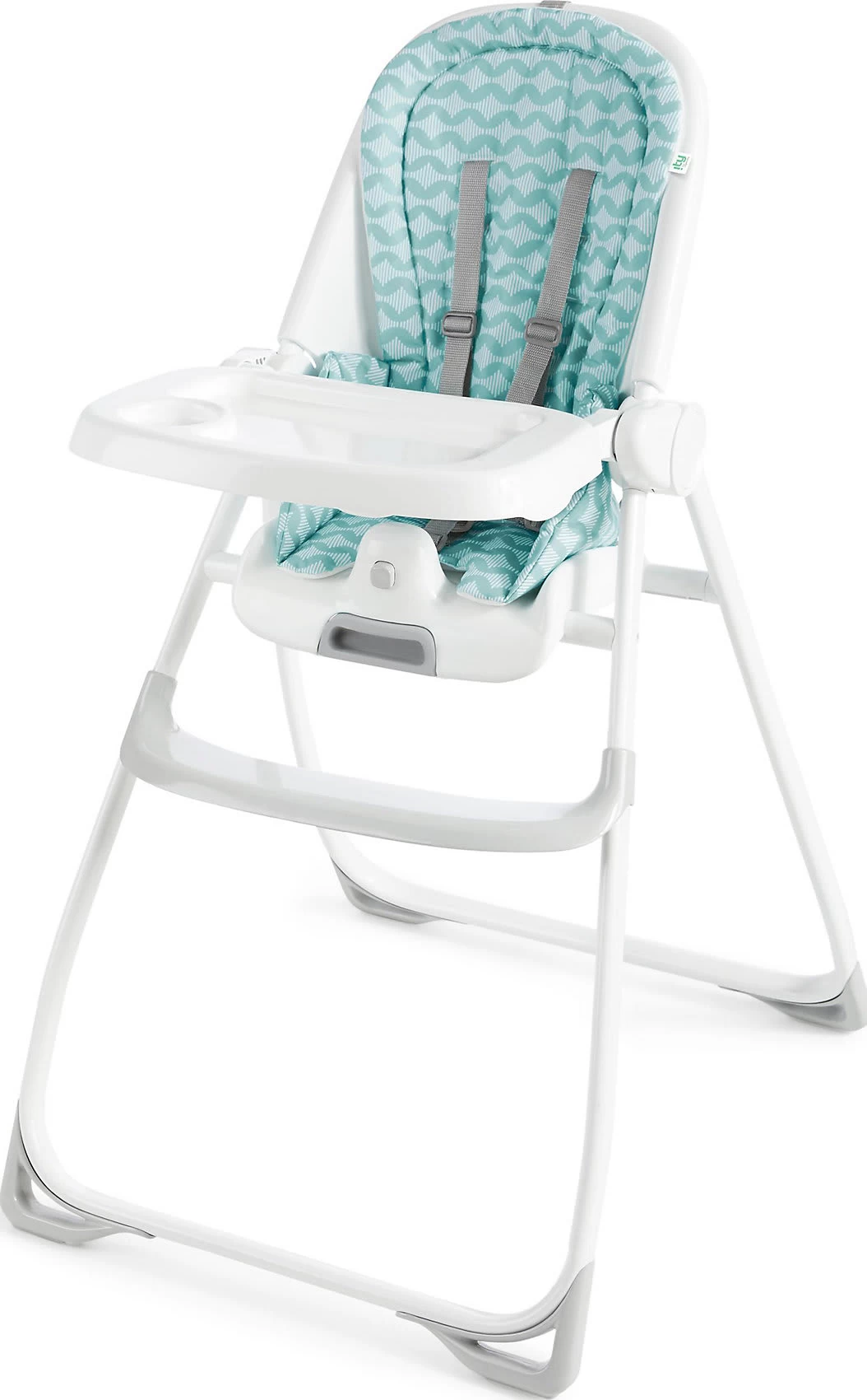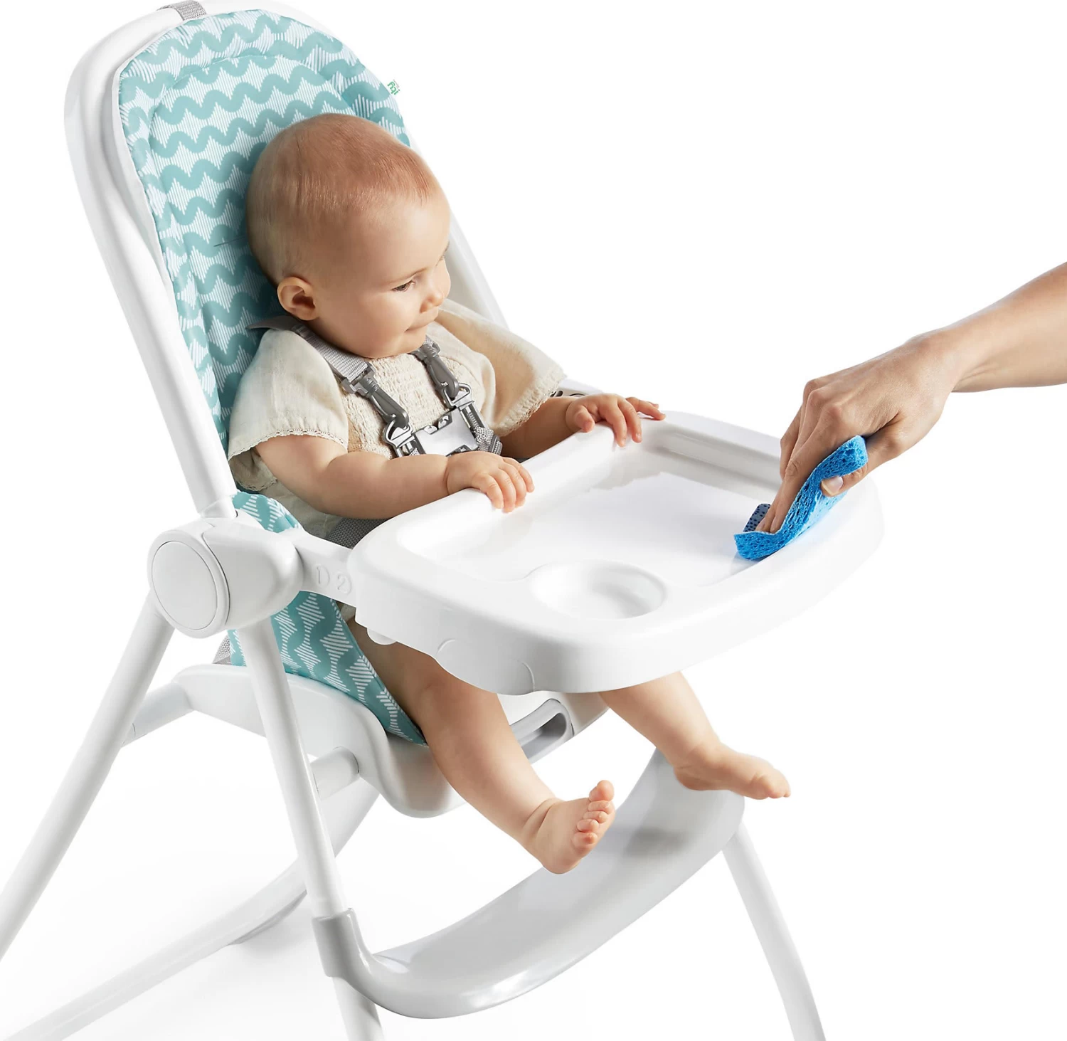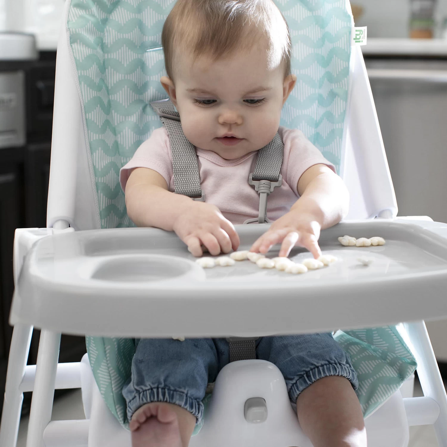 Hier kommt ein praktischer Helfer für den Alltag mit Baby. Dieser Ity by Ingenuity Yummity Hochstuhl ermöglicht es den Kleinen mit am Tisch zu sitzen und ist mit einem maschinenwaschbaren Sitzkissen ausgestattet. Dank der stabilen Füße steht der Stuhl sicher und die Fußstütze für die Kleinen sorgt für Sitzkomfort. Falls hier einmal etwas daneben geht: Kein Problem! Der Hochstuhl ist mit einem abnehmbaren Tischchen ausgestattet, der problemlos in die Spülmaschine gestellt werden kann. Das ist eine richtige Erleichterung für den Alltag. Wird der Hochstuhl nicht gebraucht, kann er platzsparend zusammengeklappt werden.