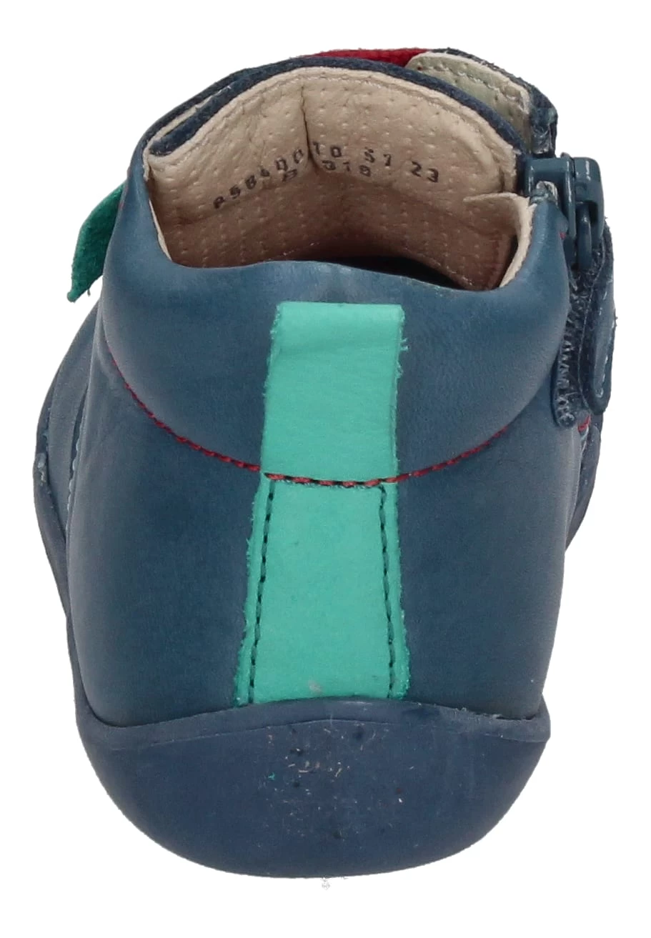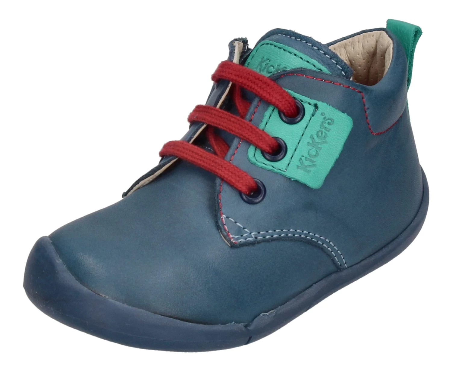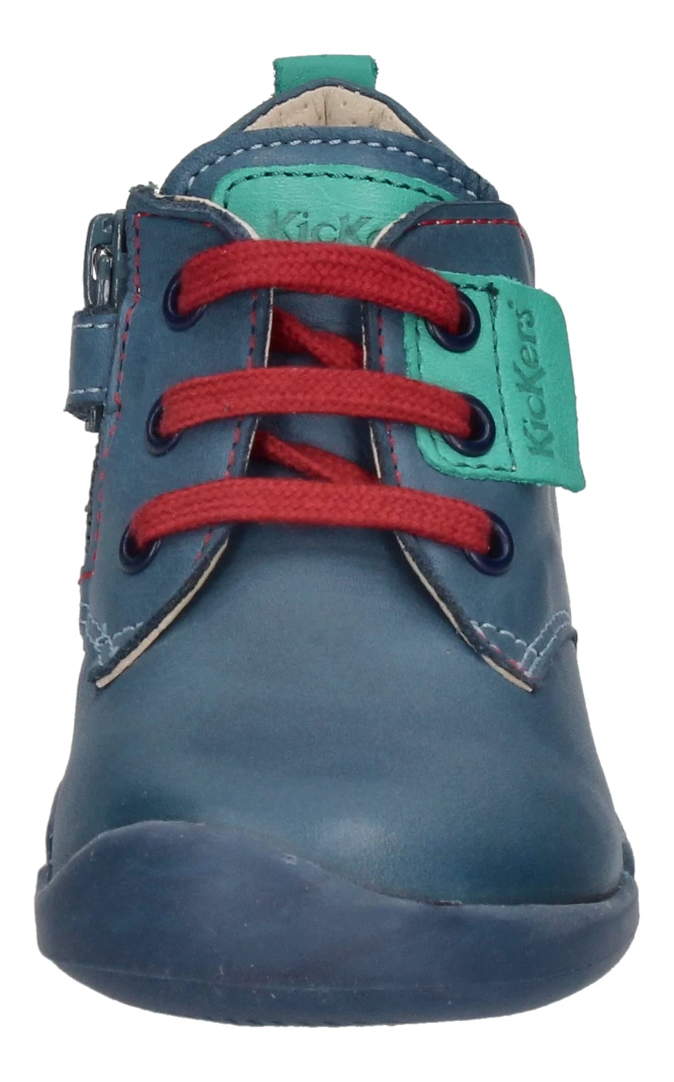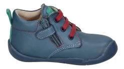 Kickers ist seit sehr langer Zeit bekannt für gute Kinder- und Lauflernschuhe. Diese niedlichen Lauflernschuhe WAZZAP in hellblau, mit grün abgesetzt, sind aus weichem Leder gefertigt und durch den Reißverschluß an der Innenseite ist das An- und Ausziehen überhaupt kein Problem