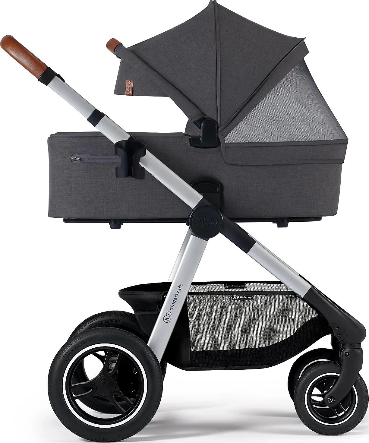 Der Wagen kann mit dem Kinderwagenaufsatz bereits ab der Geburt genutzt werden. Auf der atmungsaktiven, weichen Matratze hat es das Kind stets bequem. Später steigen Eltern auf den Sportwagenaufsatz um, der dank des Seitenschutzes vor unangenehmem Wind schützt. Der Sitz kann mit Ausrichtung nach vorn oder nach hinten auf das Gestell montiert werden, je nachdem, ob das Kind Blickkontakt zu den Eltern halten oder lieber seine Umgebung beobachten möchte. Mit nur wenigen Handgriffen lässt sich die Rückenlehne verstellen und in eine Liegeposition bringen, wenn das Kind unterwegs müde wird.