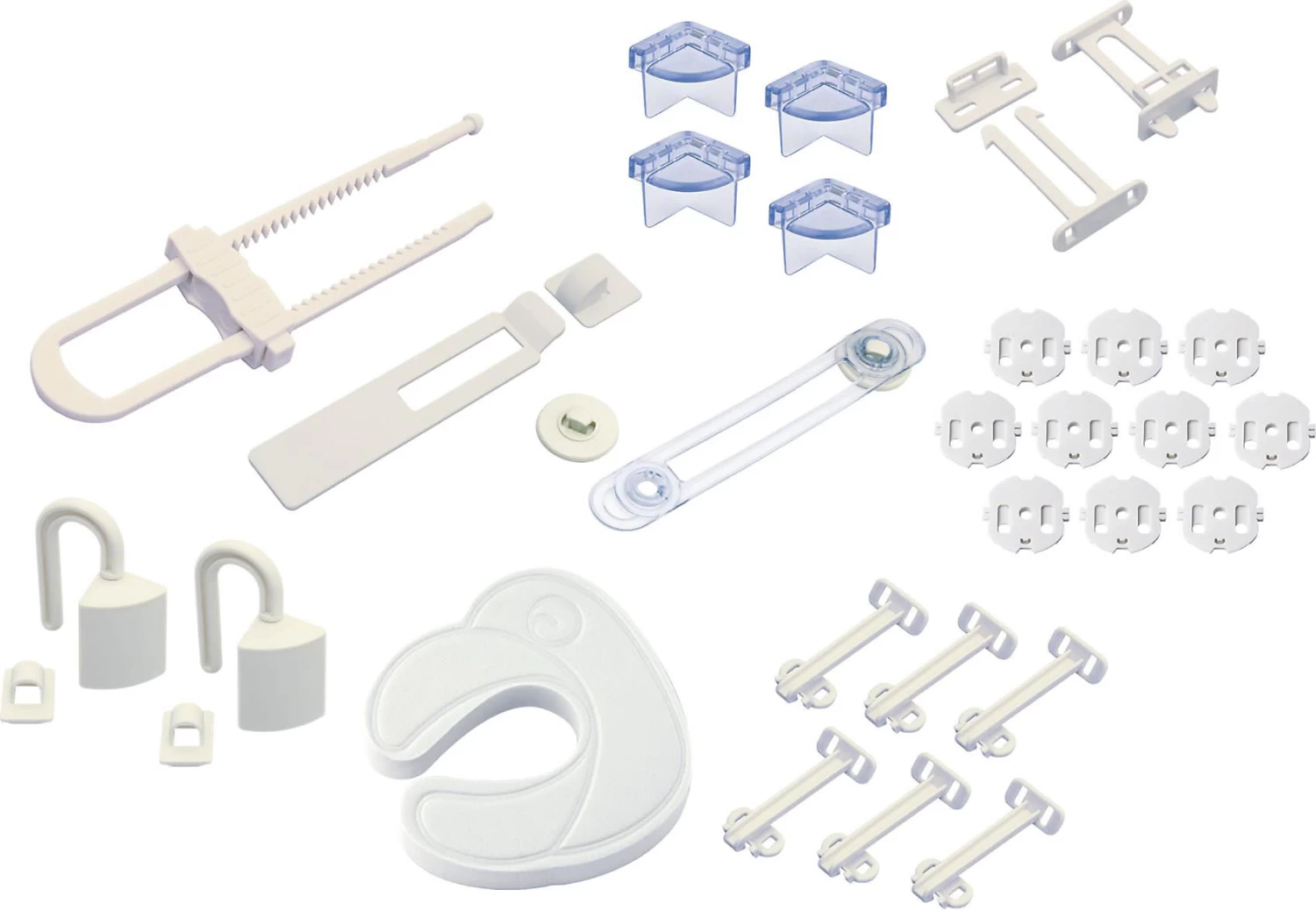 Das Kindersicherheitsset deckt verschiedene Gefahrenquellen in Wohn-, Kinderzimmer und Küche ab. Es beinhaltet: