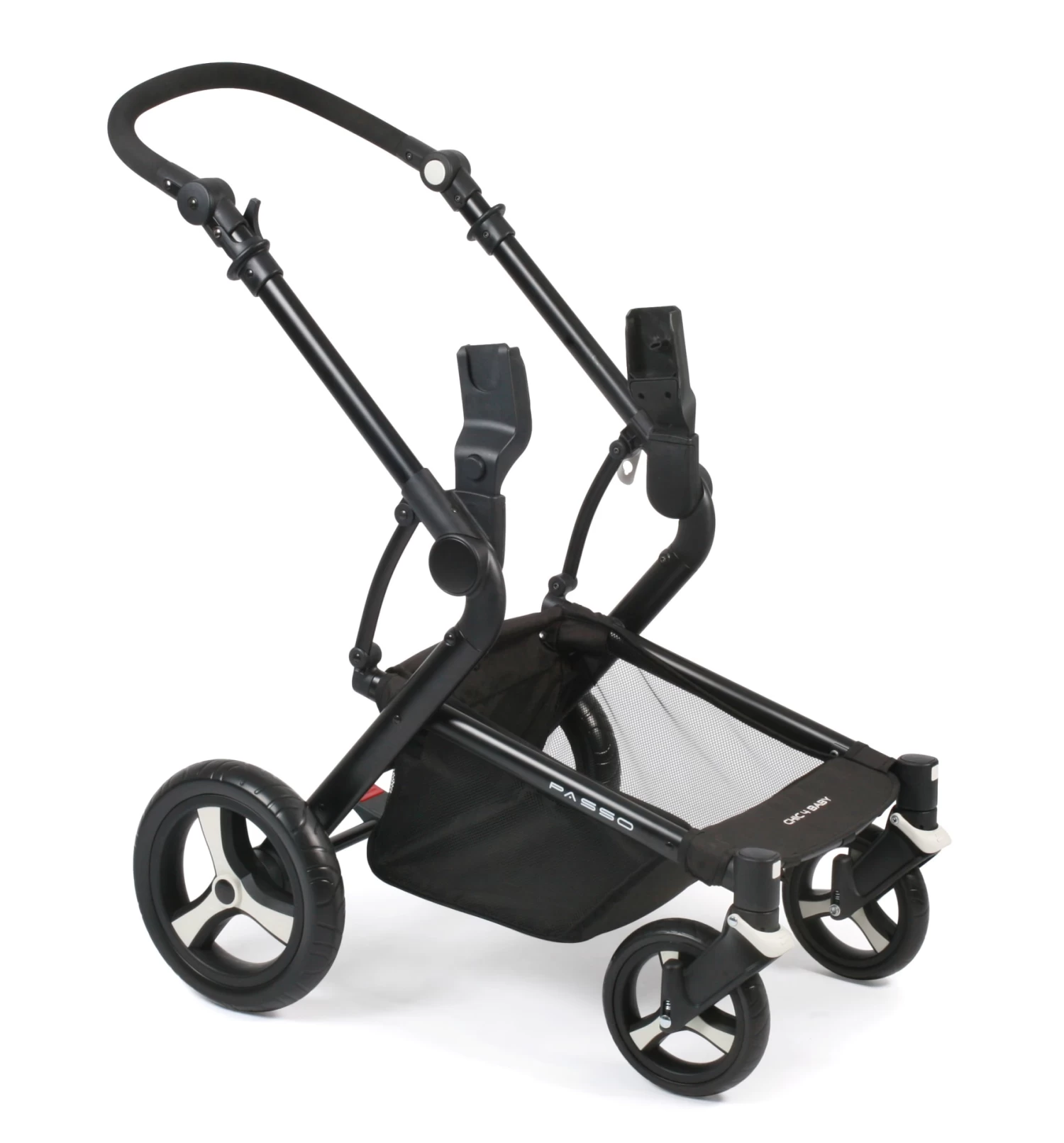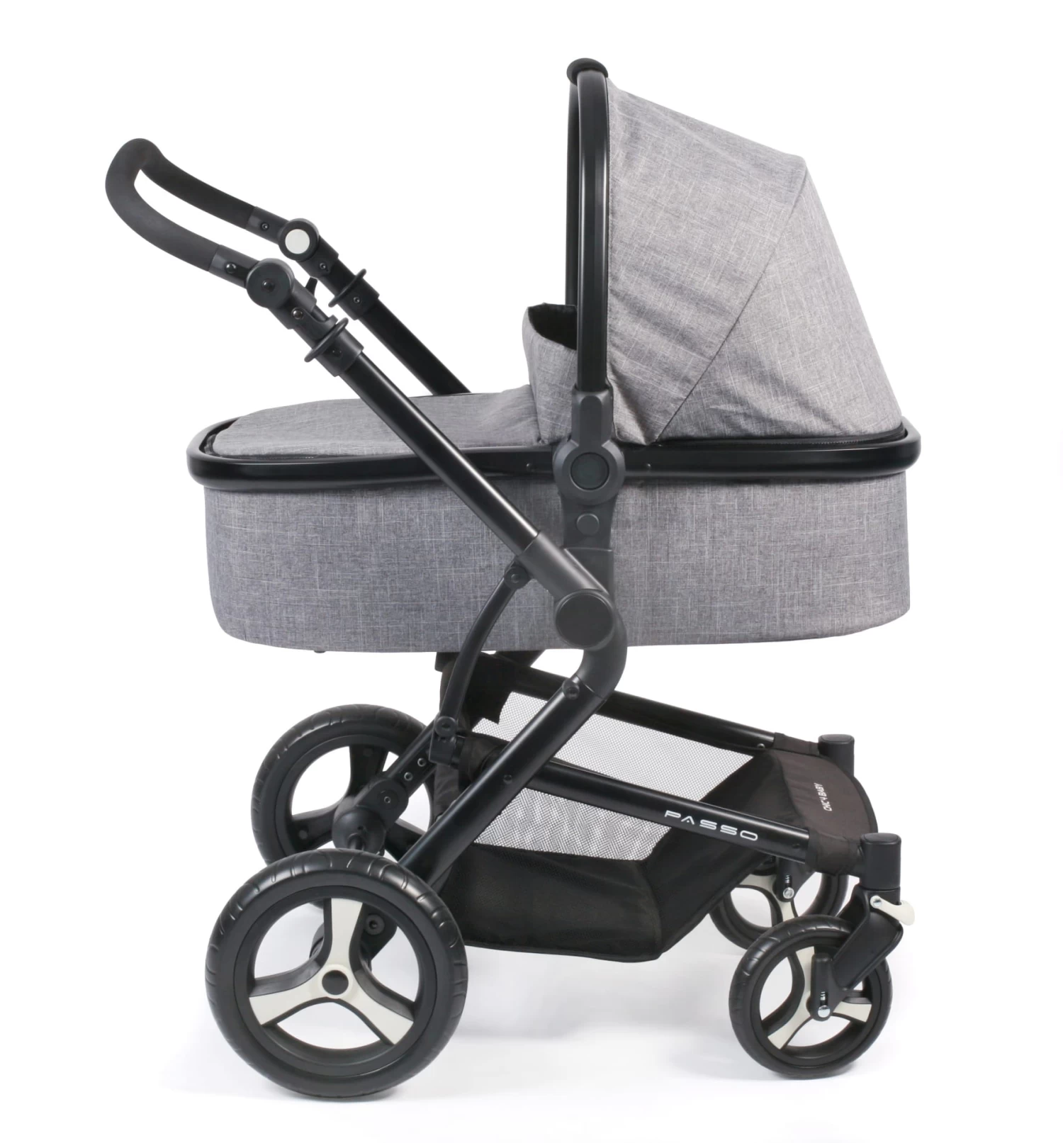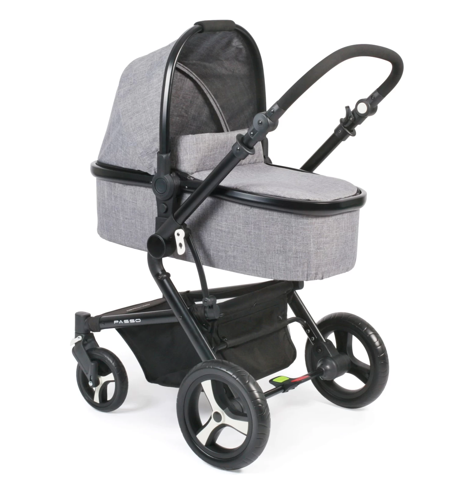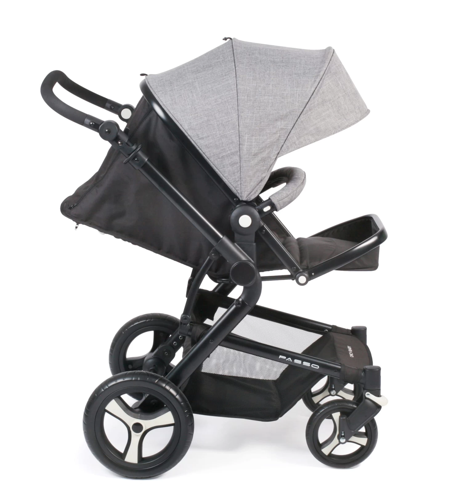Der Kombi-Kinderwagen PASSO von CHIC 4 BABY überzeugt durch sein modernes Design und vielen verschiedenen Funktionen und praktischen Komforteigenschaften. Durch die 360° schwenk- und feststellbaren Vorderräder ist er extrem wendig. Die vier gefederten Luftkammerräder ermöglichen optimalen Fahrkomfort auch auf unebenen Wegen. Das leichte Aluminium-Gestell kann für den Transport schnell und kompakt zusammengeklappt werden. Das Zusammenklappen geht besonders schnell, da der Aufsatz dazu nicht abgenommen werden muss. Der Sportwagenaufsatz kann in beide Richtungen aufgesetzt werden, so dass Sie Ihr Kind je nach Wunsch in Blick- oder in Fahrtrichtung setzen können. Die Rückenlehne ist stufenlos bis in die Liegeposition verstellbar und die Fußstütze lässt sich ebenfalls mehrfach verstellen, sodass das Kind auch im Sportwagen angenehm schlummern kann. Der Sportwagen hat ein extra großes Verdeck, das Ihr Kind vor Sonne und Wind schützt. Der stabile Wannenaufsatz hat ein umklappbares Verdeck und kann ab Geburt benutzt werden. Für die Sicherheit sorgen ein 5-Punkt-Sicherheitsgurt mit Schulterpolstern und gepolstertem Gurtschloss sowie der leicht abnehmbare Sicherheitsbügel. Der weich gepolsterte Schiebegriff ist von 94 – 106 cm höhenverstellbar und kann somit auch von unterschiedlich großen Eltern komfortabel benutzt werden. Ein Maxi-Cosi Adapter ist im Lieferumfang enthalten. Aufbaumaß: 85 x 62 x 110 cm