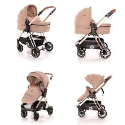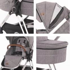Der Kombikinderwagen Angel 3 in 1 von Lorelli besteht aus einem Autositz, Babywanne und Sportsitz. Er begleitet Sie und Ihr Baby ab Geburt bis maximal 15 Kilogramm überall hin. Die Babywanne lässt sich im Handrumdrehen zum Sportsitz umbauen, welcher zusätzlich in beide Richtungen am Rahmen montierbar ist. Unter dem Kinderwagen befindet sich ein großer Korb, der genügend Platz für Spielsachen oder Ihren Einkauf bietet. Durch zudem die schwenkbaren Vorderräder und der höhenverstellbare Schiebegriff haben Sie einen optimalen Fahrkomfort. Eine Wickeltasche ist ebenfalls im Lieferumfang enthalten.