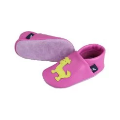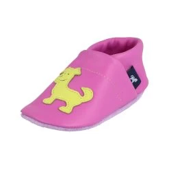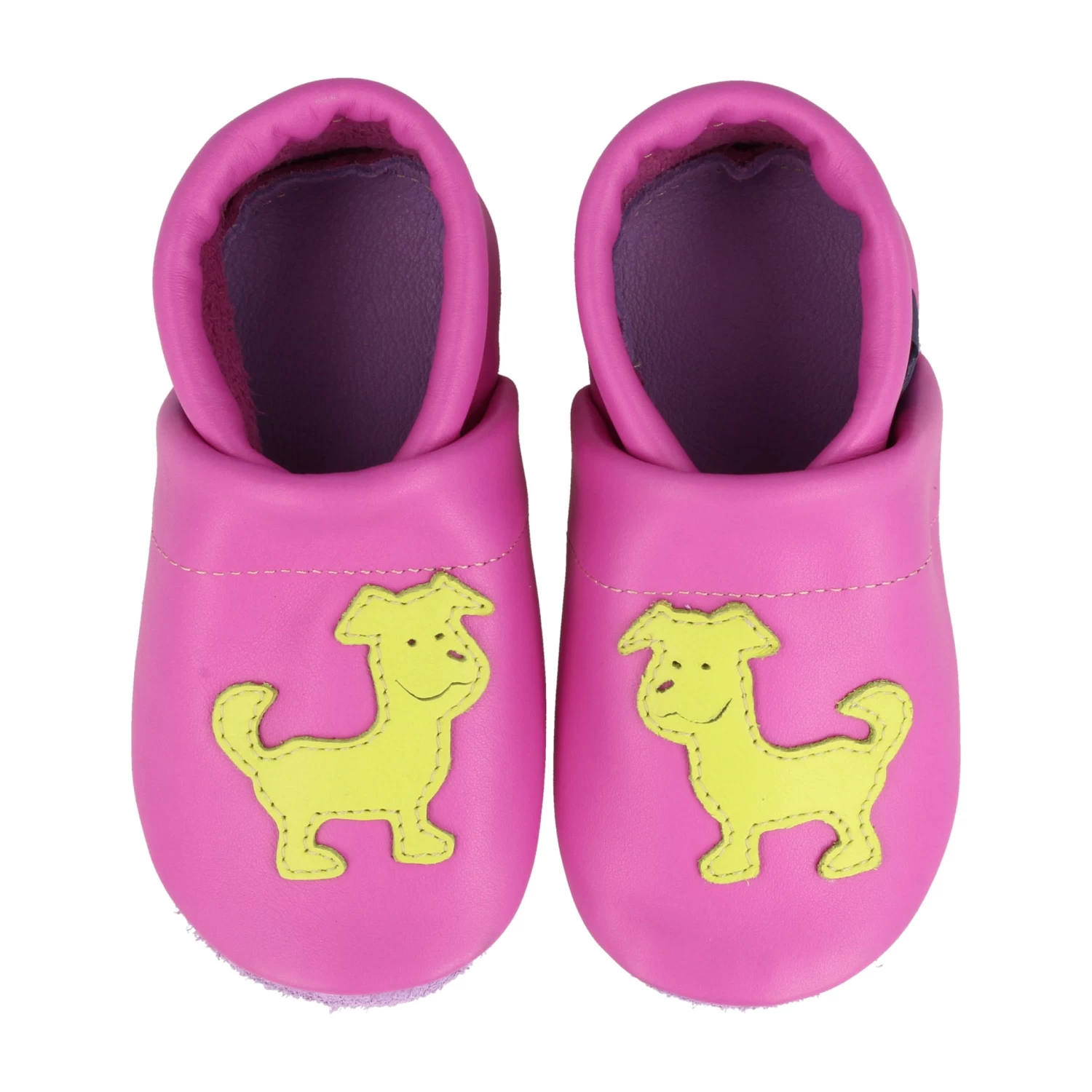 Lauflernschuhe / Lederpuschen Mit Hund In Lila / Apfelgrün