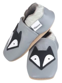 Leder-Krabbelschuhe „Fuchs“ In Grau