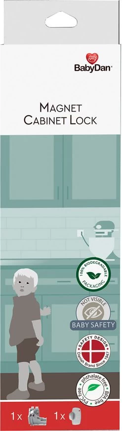 Das Baby Dan Magnet Schloss ist für Türen und Schubladen bis zu einer Stärke von 2,5 Zentimeter geeignet. So bleiben Schränke und Kommoden geschlossen, Ihr Kind kann sich die Finger nicht einklemmen.