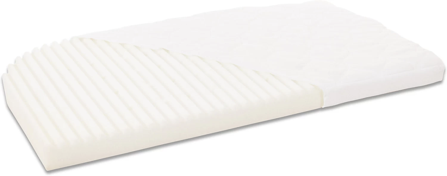 Die TOBI Matratze KlimaWave® für babybay Comfort und Boxspring Comfort sorgt mit den exakt auf die Lüftungsschlitze der babybay®-Liegefläche abgestimmten vertikalen Klimakanälen im Komfortschaumstoffkern für eine hohe Luftzirkulation. Die Wellenkontur auf der Oberfläche des Komfortschaumkerns bietet einen hohen Liegekomfort und zusätzliche horizontale Belüftung. Die Sauerstoffzufuhr beugt einem Wärmestau vor. Der Klima-Bezug bietet Schutz vor Nässe und Feuchtigkeit, ist aber dennoch luftdurchlässig. Sie benötigen keine zusätzliche wasserabweisende Auflage. Der Schaumstoffkern passt sich durch die Versteppung des Bezuges der Körperform Ihres Lieblings an, wirkt stützend und sorgt so für einen tiefen Babyschlaf. So fühlt sich Ihr Baby rundum wohl. Der Bezug lässt sich durch seinen dreiseitigen Reißverschluss jederzeit leicht abnehmen und ist waschbar.