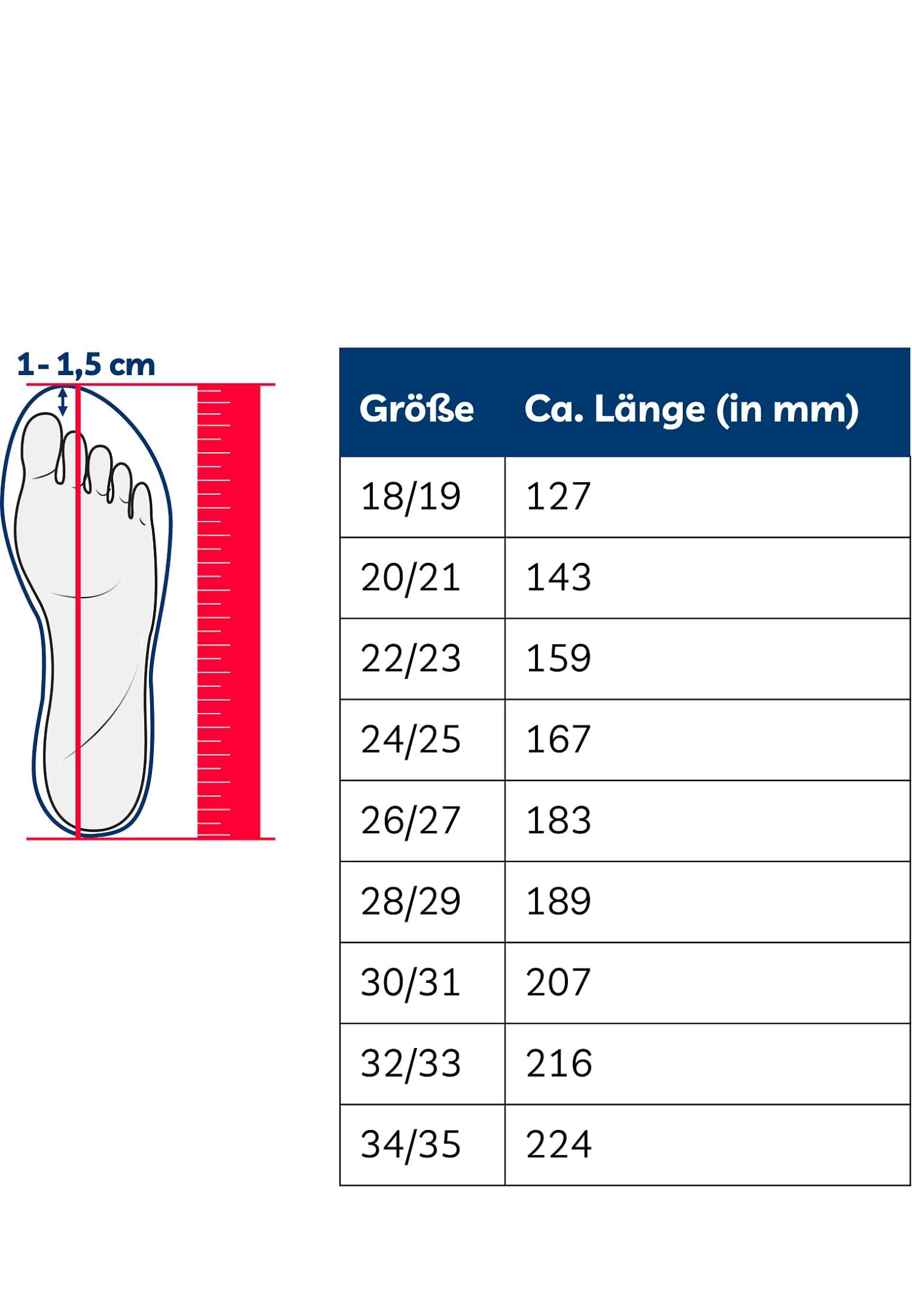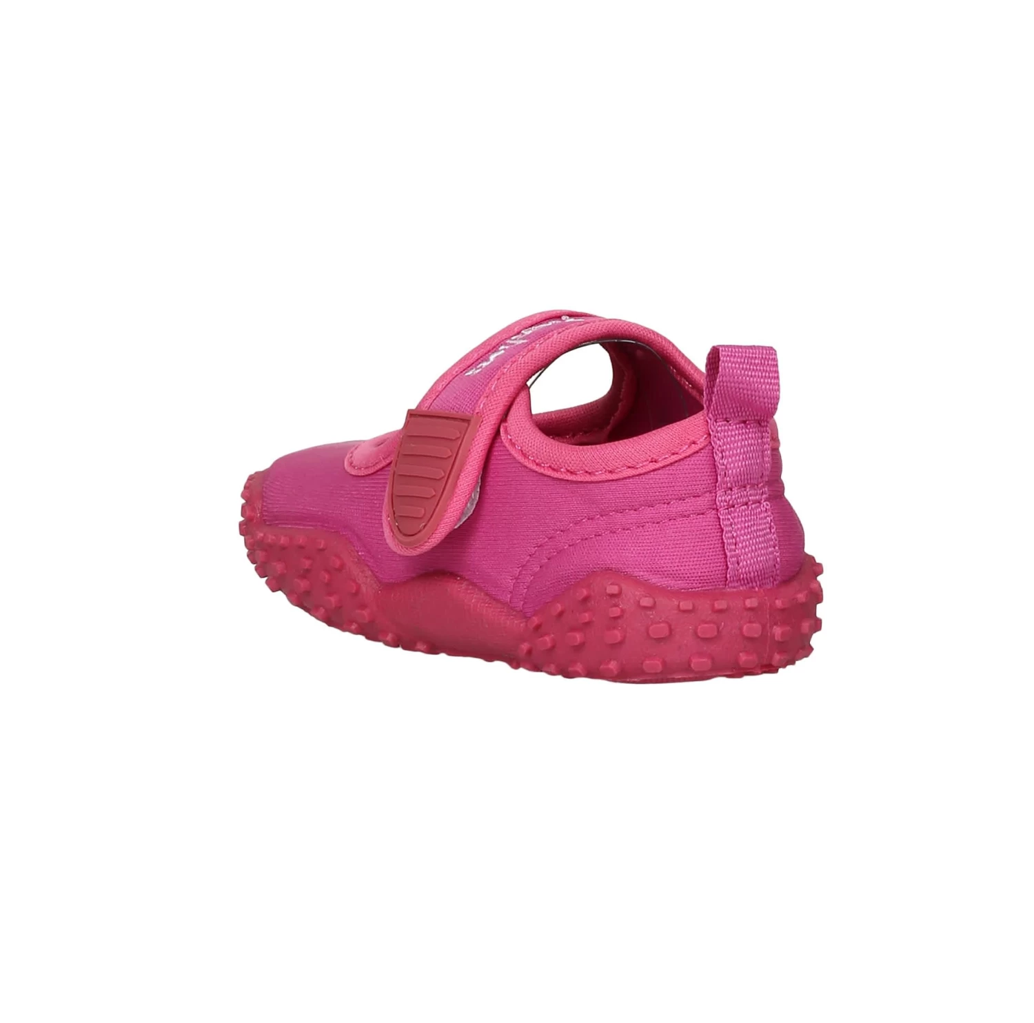 Egal ob am Strand oder im Schwimmbad, mit diesen praktischen Aqua-Schuhen ist ihr Kind bestens für die Badesaison gerüstet. Die Aquaslipper haben eine rutschhemmende TPR Sohle und schützen die Füße rundherum vor spitzen Steinen und heißem Sand. Der praktische Klettverschluss ermöglicht ein schnelles An- und Ausziehen der Bade-Sneaker und gibt zusätzlich einen guten Halt im Schuh. – Obermaterial: Textil – Futter & Decksohle: Textil – Laufsohle: Sonstiges Material