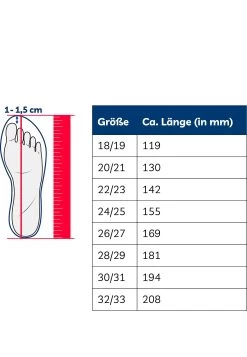 | Größe auswählen | 18/19, 20/21, 22/23, 24/25, 26/27, 28/29, 30/31 |