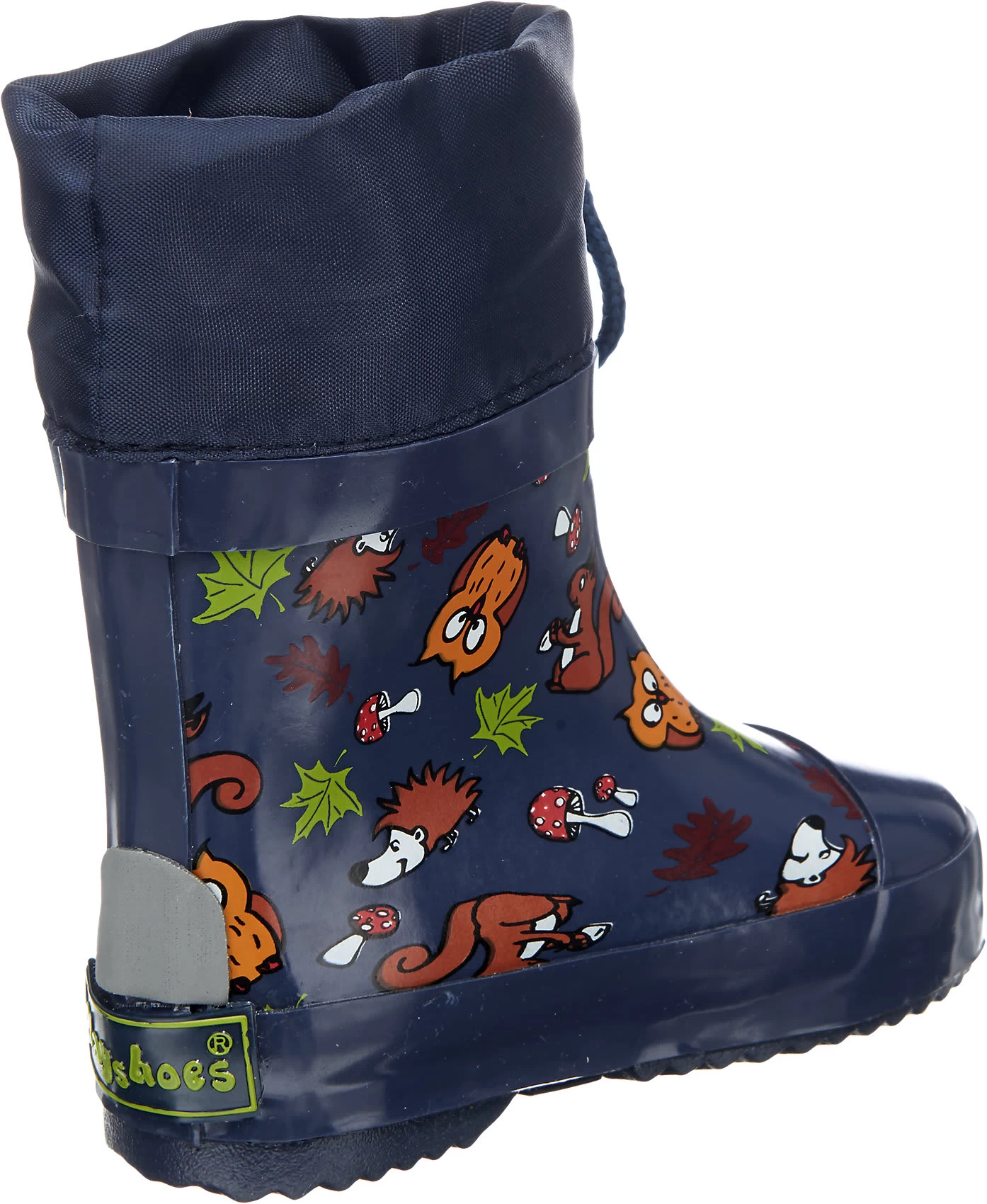 Der ideale Begleiter für kalte, verregnete Tage: Mit den wasserdichten und warm gefütterten Kinderstiefeln macht das Spielen und Herumtollen an der frischen Luft besonders viel Spaß. Praktische Gummi-Stiefelette für ein angenehmes Tragefühl: Durch den kurzen Schaft eigenen sich die Regen-Boots besonders für die Kleinsten. Die an der Rückseite der Matsch-Stiefel angebrachten Reflektoren sorgen für mehr Sicherheit im Dunkeln oder bei schlechtem Wetter. Durch den offenen Schlupf und die Einstiegshilfe lassen sich die Regen-Schuhe für Jungen und Mädchen leicht an- und ausziehen. Mit dem Zugband und Stopper an der Stulpe kann das Eindringen von Regen verhindert werden. Die Sohle hat eine praktische Vertiefung, in der man den elastischen Fußsteg von Regen- und Matschhosen fixieren kann. So wird das Hochrutschen der Hosenbeine verhindert. Mit den schicken Schlupf-Stiefeln aus hochwertigem Natur-Kautschuk sind die Kleinen auch bei schmuddeligem Wetter gut und passend gekleidet.
