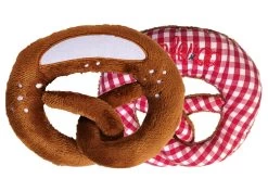 Henry liebt Brezen über alles und hätte gerne immer eine dabei. Damit ihm seine Mama nicht ständig eine neue kaufen muss, bekommt er jetzt eine, die immer frisch bleibt, überall dabei sein kann und auch noch rasselt. Sie hat hinten auch noch ein schickes Trachtenkaromuster aus 100% Baumwolle, damit er nicht vergisst, dass sie zum Spielen und nicht zum Essen ist.
