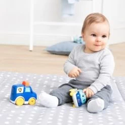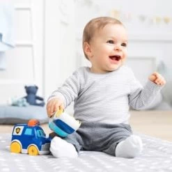Kaum etwas macht dem Baby mehr Spaß als hinter dem Push & Go Polizeiauto von solini hinterherzukrabbeln. Push & Go Auto im Polizei-Design kindgerechte bunte Farben schwungradangetriebene Räder 10(L) x 7(B) x 9(H) cm aus Kunststoff gefertigt Das Push & Go Polizeiauto von solini bietet dem Baby einen ganz besonderen Spaß. Denn zuerst drückt es den Kopf des Fahrers herunter. Schon saust das kleine Polizeiauto schwungradgetrieben von dannen. Und das Baby krabbelt vergnügt und lachend hinterher. So werden spielerisch motorische Fähigkeiten eingeübt. Das Spielzeug weist kindgerechte Farben und Formen auf, kann gut gegriffen werden und ist aus Kunststoff hergestellt.