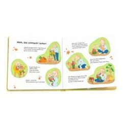 Das Pappbilderbuch „Bild für Bild erzählen wir Geschichten“ von Ravensburger enthält zehn kurze Geschichten aus dem Familienalltag. Dank der leicht verständlichen Texte eignet es sich als Vorlesebuch für Kinder ab dem zweiten Lebensjahr. ab 12 Monaten geeignet Pappbilderbuch mit wattierter Buchdecke 24 Seiten deutschsprachig Mit einfachen Texten und bunten Illustrationen beschreiben die Vorlesegeschichten alltägliche Situationen aus dem Leben kleiner Kinder. Mal wird lecker gegessen, dann soll musiziert und getanzt werden. Und auch ein Besuch der Großeltern steht an. Dabei kann sich der Nachwuchs mit den kindlichen Protagonisten identifizieren und das Geschilderte miterleben. Die einfachen Sätze fördern in Kombination mit den zum beschriebenen Geschehen passenden Bildern den Spracherwerb.