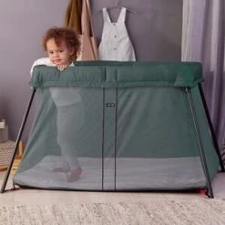 Das Reisebett Light von BabyBjörn ist genau das Richtige, wenn der kleine Schatz auf große Reise geht. Das Bett lässt sich mit einem einzigen Handgriff aufstellen und zusammenfalten. Lieferumfang: Bettgestell, feste Matratze, Tragetasche Material: Seitenwände aus luftdurchlässigem Mesh-Gewebe Verwendung: klappbares Reisebett Das Reisebett überzeugt mit seiner durchdachten Konzeption. Es hat ein leichtes Gewicht und lässt sich ganz einfach auf- und abbauen. In der mitgelieferten Tasche ist das Bett bequem zu transportieren. Das Reisebett ist mit einigen Sicherheitsfunktionen ausgestattet. Dabei gibt die feste Matratze dem Bett eine robuste Standfestigkeit, sodass das Kind immer rutschsicher gebettet ist. Weiterhin ist der Innenbereich des Reisebettes weich ausgekleidet, wodurch sich das Kind behaglich aufgehoben fühlt und auch unterwegs bestens schläft. Hierzu sind die Wände zusätzlich nach innen geneigt, was den Wohlfühlfaktor beim Kind steigern kann. Die Innenneigung der Wände bietet zudem eine weitere Sicherheitskomponente: Dem Kind ist es durch die Wandneigung vollkommen unmöglich gemacht, unbeaufsichtigt aus dem Bett zu klettern. Geeignet ist das Bett ab Geburt bis 3,5 Jahre. Die Bettmaße sind in der Länge 112 Zentimeter, in der Breite 82 Zentimeter und in der Höhe 60 Zentimeter. Insgesamt wiegt das Reisebett nur 5 Kilogramm.