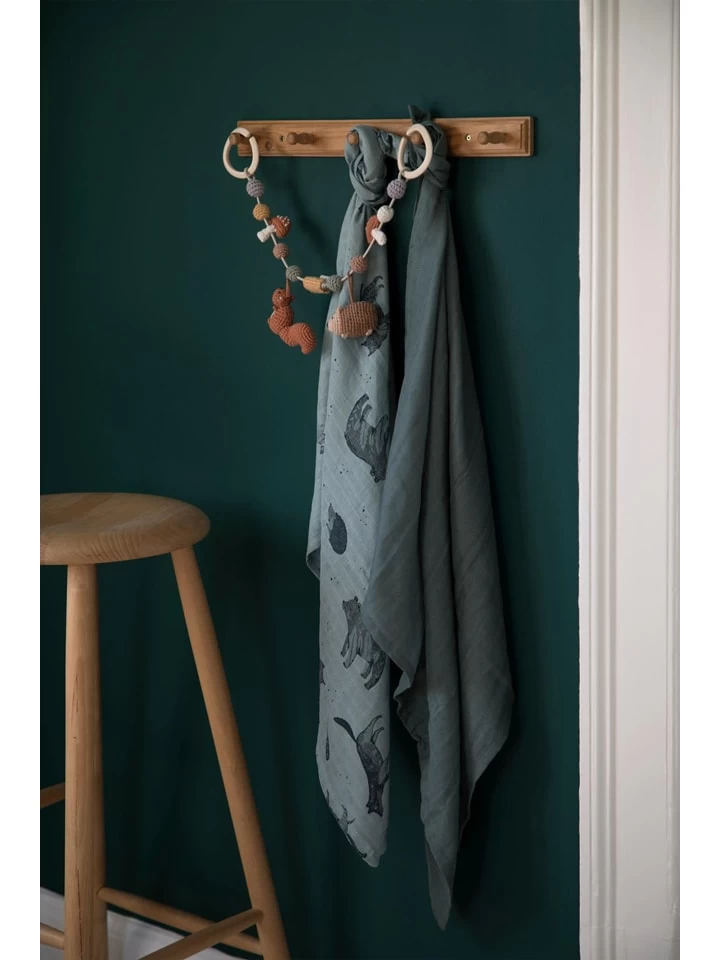 Achtung! Um mögliche Verletzungen durch Verheddern zu verhindern, ist dieses Spielzeug zu entfernen, wenn das Kind beginnt, auf allen Vieren zu krabbeln.