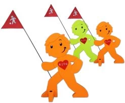Viele Autofahrer passen in verkehrsberuhigten Zonen, am Ortseingang oder vor Kindergärten und Schulen nicht immer ihre Fahrgeschwindigkeit an. Der Warnaufsteller „StreetBuddy“ macht die Autofahrer darauf aufmerksam: Streetbuddy ist aus hochwertigem Plastik und kündigt spielende Kinder an. Die reflektierenden Aufkleber und die Fahne sind auch im Dunkeln gut sichtbar.