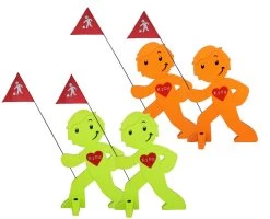 Viele Autofahrer passen in verkehrsberuhigten Zonen, am Ortseingang oder vor Kindergärten und Schulen nicht immer ihre Fahrgeschwindigkeit an. Der Warnaufsteller „StreetBuddy“ macht die Autofahrer darauf aufmerksam: Streetbuddy ist aus hochwertigem Plastik und kündigt spielende Kinder an. Die reflektierenden Aufkleber und die Fahne sind auch im Dunkeln gut sichtbar.