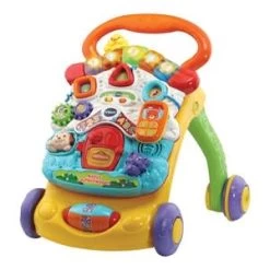 Mit kleinen Schritten die große Welt entdecken – der Lauflernwagen von Vtech unterstützt die Kleinen beim Laufenlernen. Babys Lauflernwagen von Vtech bunte Elemente zum Entdecken, aufleuchtende Zahlentasten, Bewegungssensor für Musik klein zusammenklappbar Lautstärkeregler, kindersicheres Batteriefach, Abschaltautomatik inkl. Demobatterien (2 x AA) ideal ab 12 Monaten Der bunte Lauflernwagen fördert spielerisch die motorischen Fähigkeiten und die Hand-Auge-Koordination der Kleinen. Wenn die Kleinen anfangen den Wagen zu schieben, löst der Bewegungssensor Musik aus. Die vielen bunten Elemente wie Zahnräder, Formen und Tür und die aufleuchtenden Zahlentasten laden die Kleinen zum Entdecken ein. Damit der Lauflernwagen leicht zu verstauen ist, kann er klein zusammengeklappt werden.